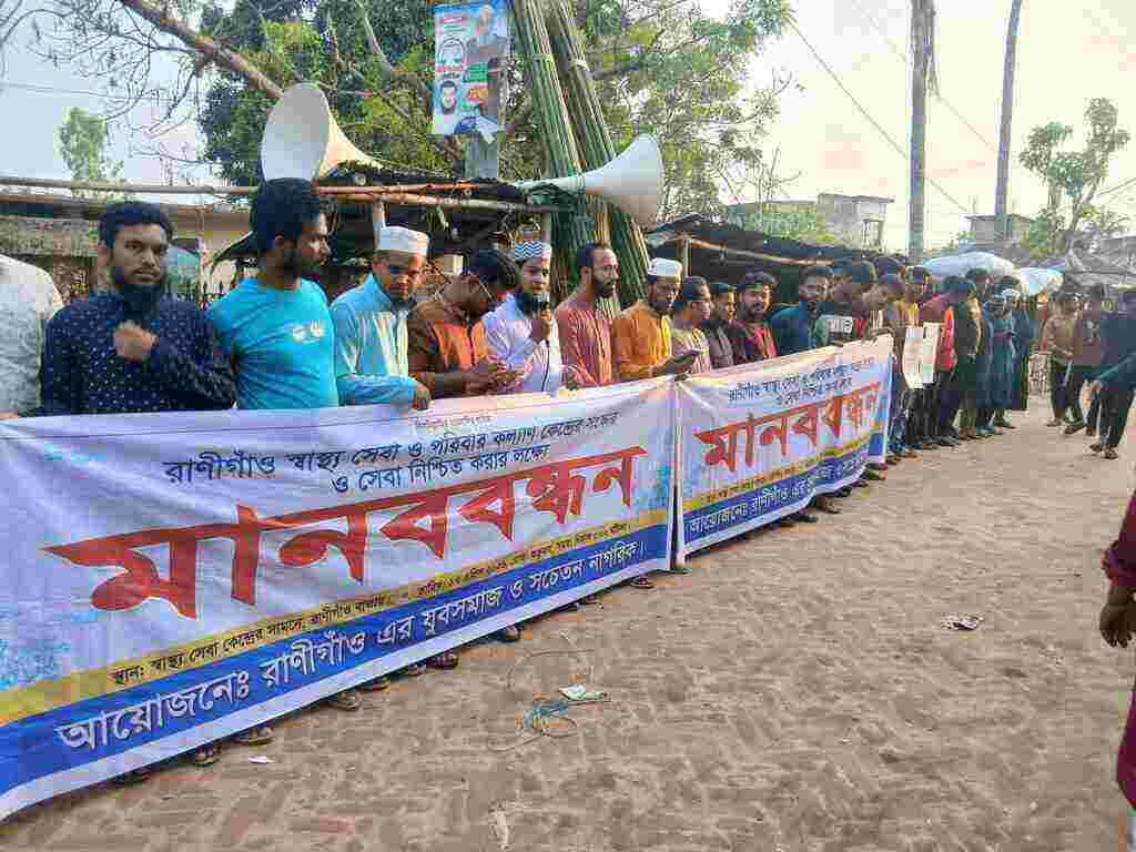 হবিগঞ্জ জেলার চুনারুঘাট উপজেলার রাণীগাঁও ইউনিয়নে অবস্থিত স্বাস্থ্য সেবা ও পরিবার কল্যাণ কেন্দ্রের কার্যকর সেবা নিশ্চিত ও সংস্কারের দাবিতে মানববন্ধন অনুষ্ঠিত হয়েছে।