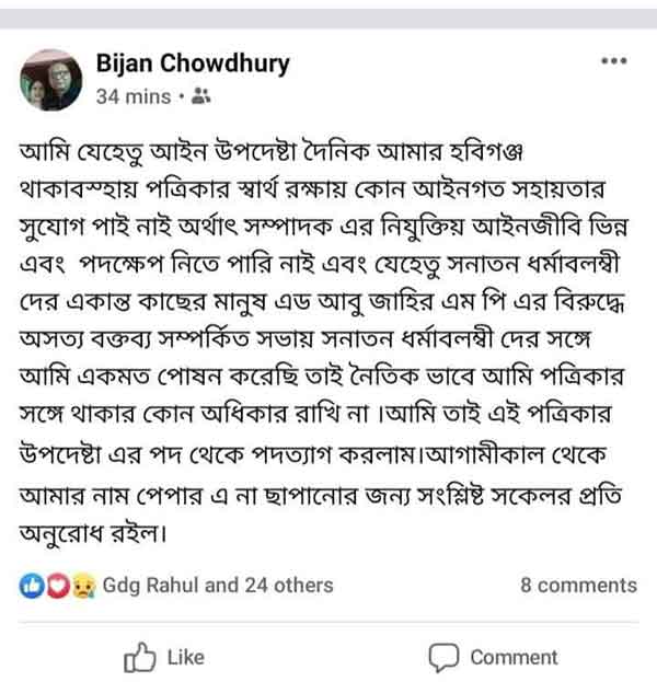 Homeদৈনিক আমার হবিগঞ্জের আইন উপদেষ্টা থেকে পদত্যাগ করলেন এ্যাডভোকেট বিজনদৈনিক-আমার-হবিগঞ্জের-আইন-উপদেষ্টা-থেকে-পদত্যাগ-করলেন-এ্যাডভোকেট-বিজন