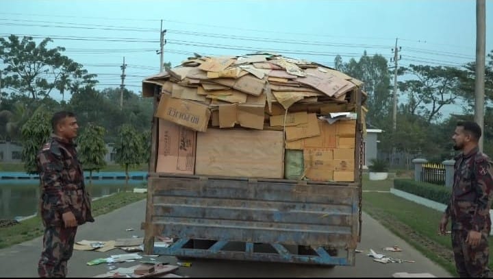 বিজিবি সূত্র জানায়, গোপন সংবাদের ভিত্তিতে হবিগঞ্জ ৫৫ বিজিবি ব্যাটালিয়নের একটি বিশেষ টহল দল রবিবার ১১ জানুয়ারি ২০২৬ তারিখ সীমান্ত হতে আনুমানিক ০৫ কিঃ মিঃ বাংলাদেশের অভ্যন্তরে হবিগঞ্জ জেলার মাধবপুর উপজেলাধীন ঢাকা সিলেট মহা সড়কের জগদীশপুর মুক্তিযোদ্ধা চত্বর এলাকায় কৌশলগতভাবে অবস্থান নিয়ে আত্মগোপন করে থাকে। পরবর্তীতে আনুমানিক বিকাল ৫ টার দিকে ০১টি পুরাতন কাগজের কার্টুন ভর্তি ট্রাক আসতে দেখে গাড়ীটি সংকেত দিয়ে থামানো হয়। উক্ত ট্রাকটি তল্লাশী করে কার্টুন নিচে অভিনব কায়দায় লুকানো অবস্থায় পরিবহনকালে ভারতীয় বিপুল পরিমান কসমেটিকস, শাড়ীসহ জিরা দেখতে পাওয়া যায়। বিজিবি টহল দলকে মালামালের কোন বৈধ কাগজপত্র দেখাতে না পারায় মালামালগুলো আটক করা হয়। আটক ভারতীয় পণ্যের সর্বমোট সিজার মূল্য আনুমানিক ১ কোটি ৫৫ লক্ষ টাকা।