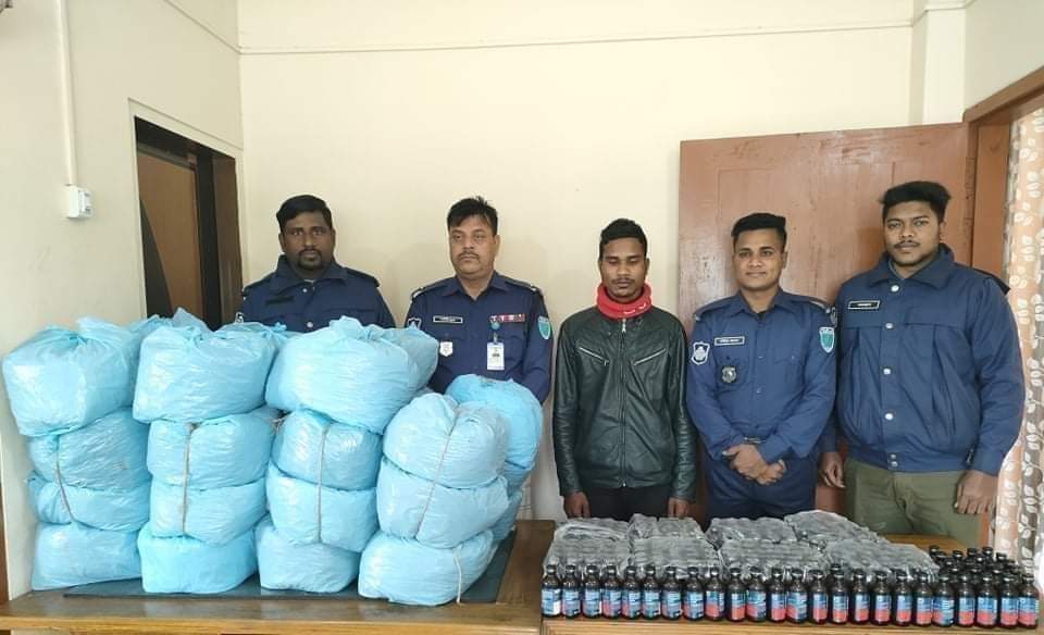 হবিগঞ্জের মাধবপুরে বিপুল পরিমাণ গাঁজা ও ভারতীয় ফেন্সিডিলসহ এক মাদক কারবারি কে আটক করেছে পুলিশ।