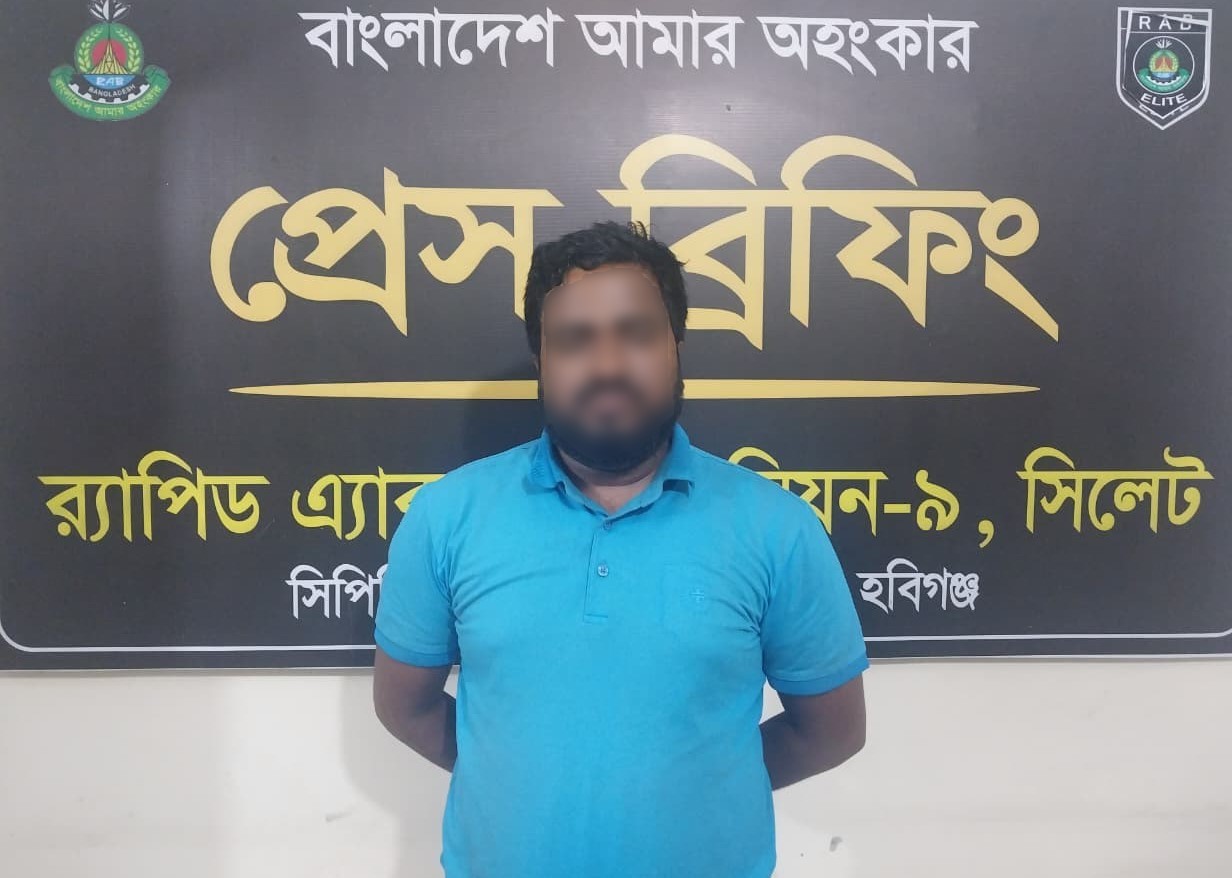 শুক্রবার (১৭ এপ্রিল) দিবাগত রাত ১২টা ২৫ মিনিটে হবিগঞ্জ সদর মডেল থানার ধুলিয়াখাল এলাকায় অভিযান চালিয়ে তাকে গ্রেপ্তার করা হয়।